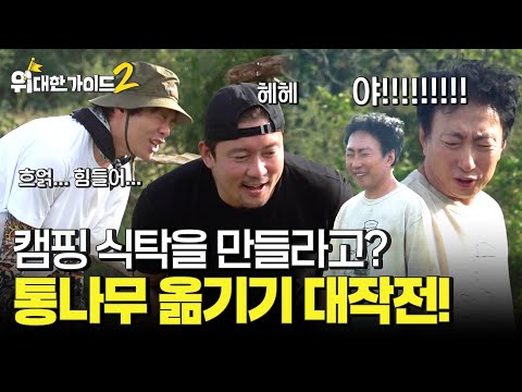 캠핑 중 식탁 만들기!🌳 움직이지 않는 통나무와의 사투?! l #위대한가이드2 l #MBCevery1 l EP.4
