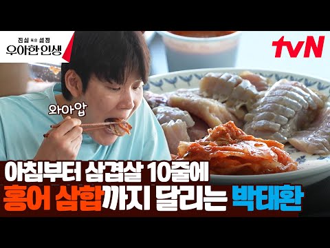 일어나자마자 삼겹살 10줄에 홍어 삼합까지? 박태환의 미친 먹성 #진실혹은설정우아한인생 EP.5 | tvN 240523 방송