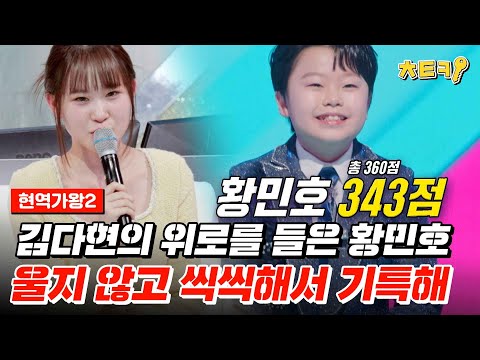 #현역가왕2 꼴찌 점수에도 울지 않고 씩씩하게 무대 마친 황민호에 위로를 아끼지 않는 판정단 #치트키