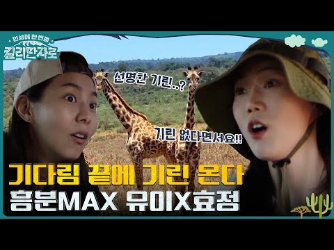 Real 기린? 기린🦒!! 5시간 기다림 끝에 만난 기린 & 얼룩말! 흥분한 유이 X 효정ㅋㅋ #인생에한번쯤킬리만자로 | tvN 221112 방송